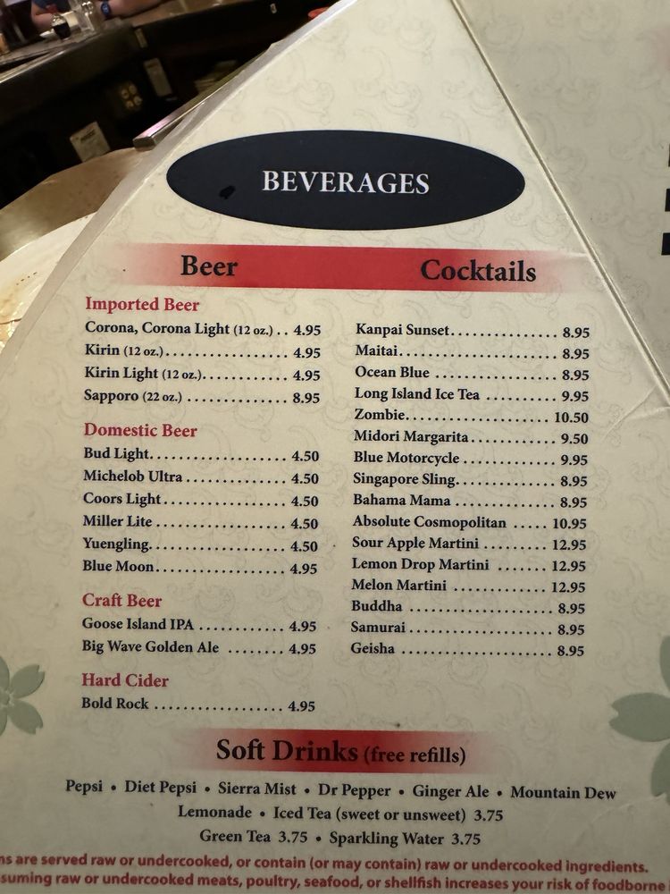 “ I came here for a team outing and had a good time. I always enjoy going to Japanese Steakhouses for the entertainment and delicious food. Our chef was energetic and really seemed to enjoy his job, which made the experience an enjoyable one. The facility was really clean and well kept. The dinner portions are really big. I ordered a combo steak and shrimp and was unable to eat it all. Thankfully the staff seems to anticipate that and has to go boxes ready to go. ”